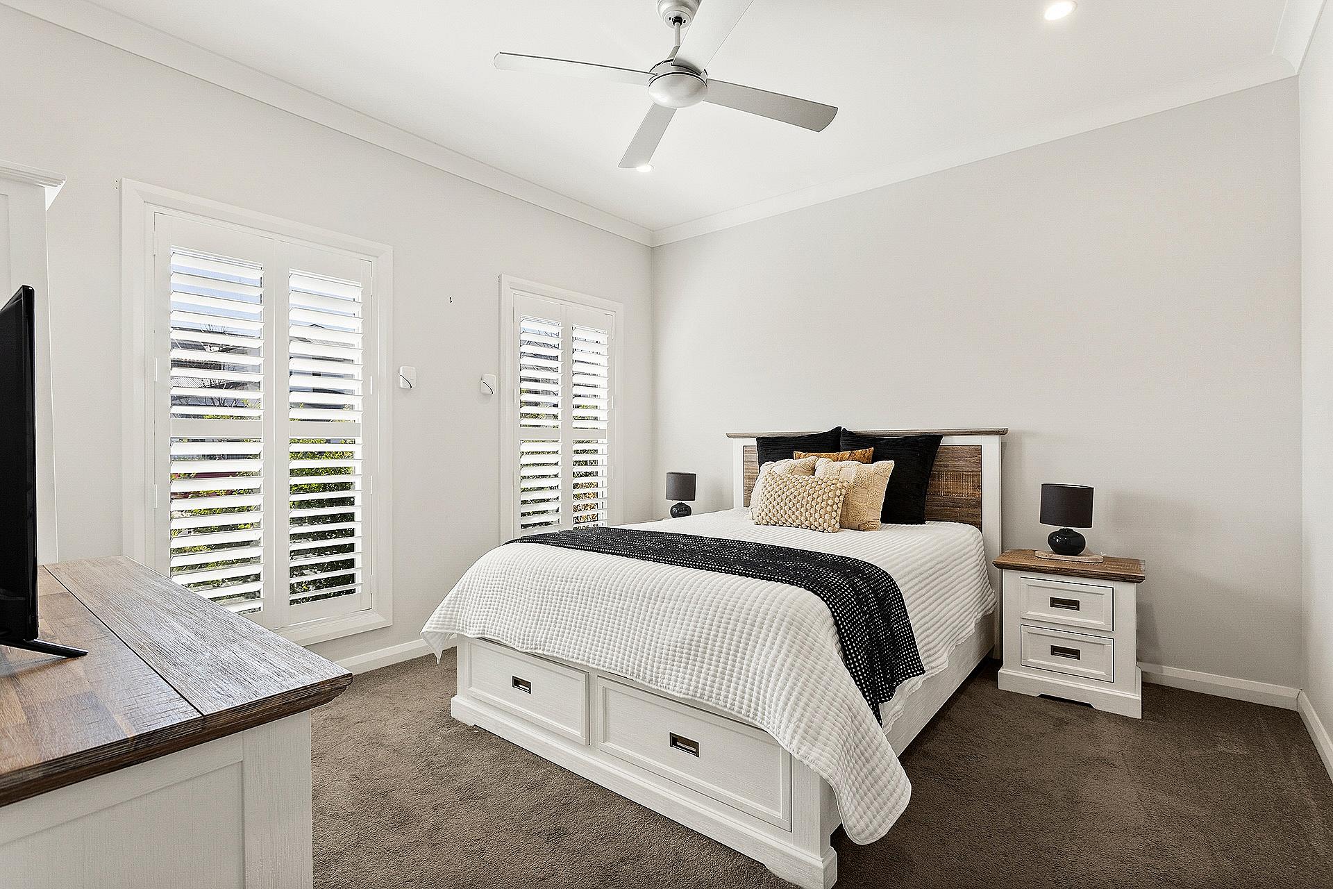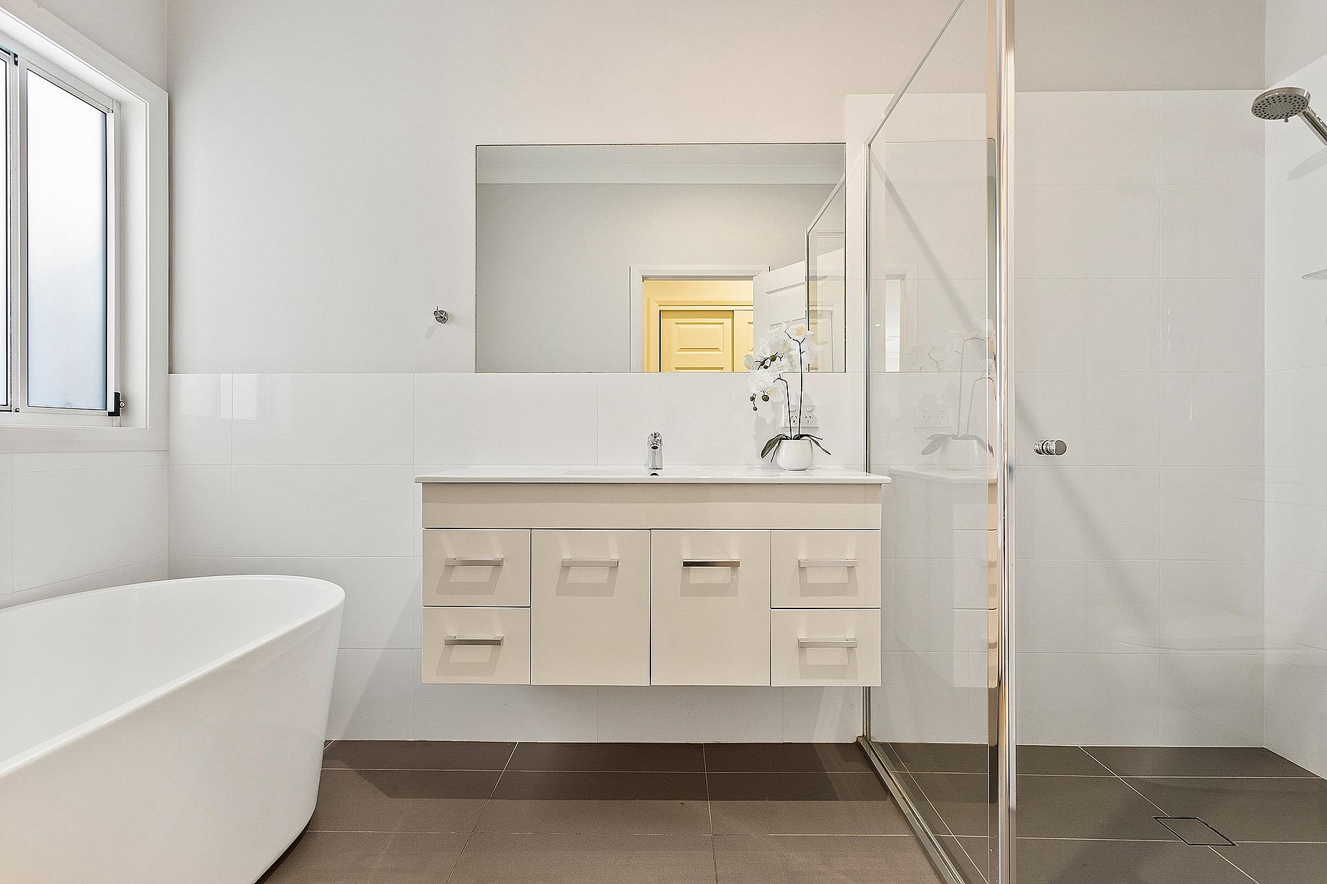 Thoughtful touches and fresh tones of white continue in the bathroom with a free-standing tub, a well-designed internal laundry with internal access to a remote tandem garage.